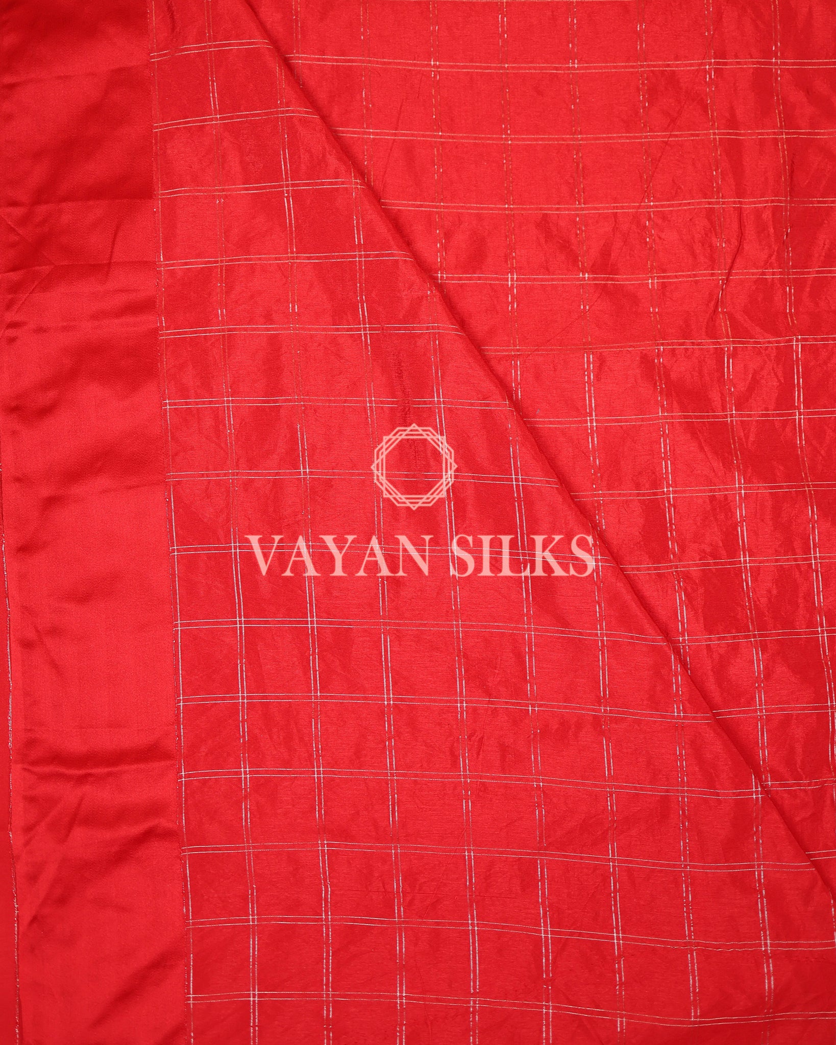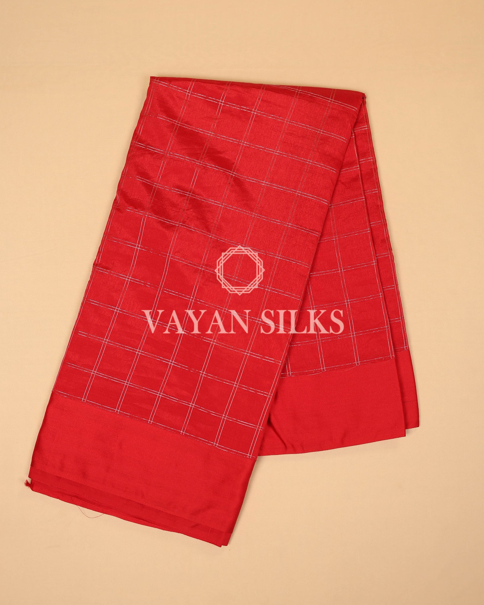 Banarasi Saree in classic Red with elegant checkered design and plain border. A timeless choice for festive occasions and traditional celebrations.