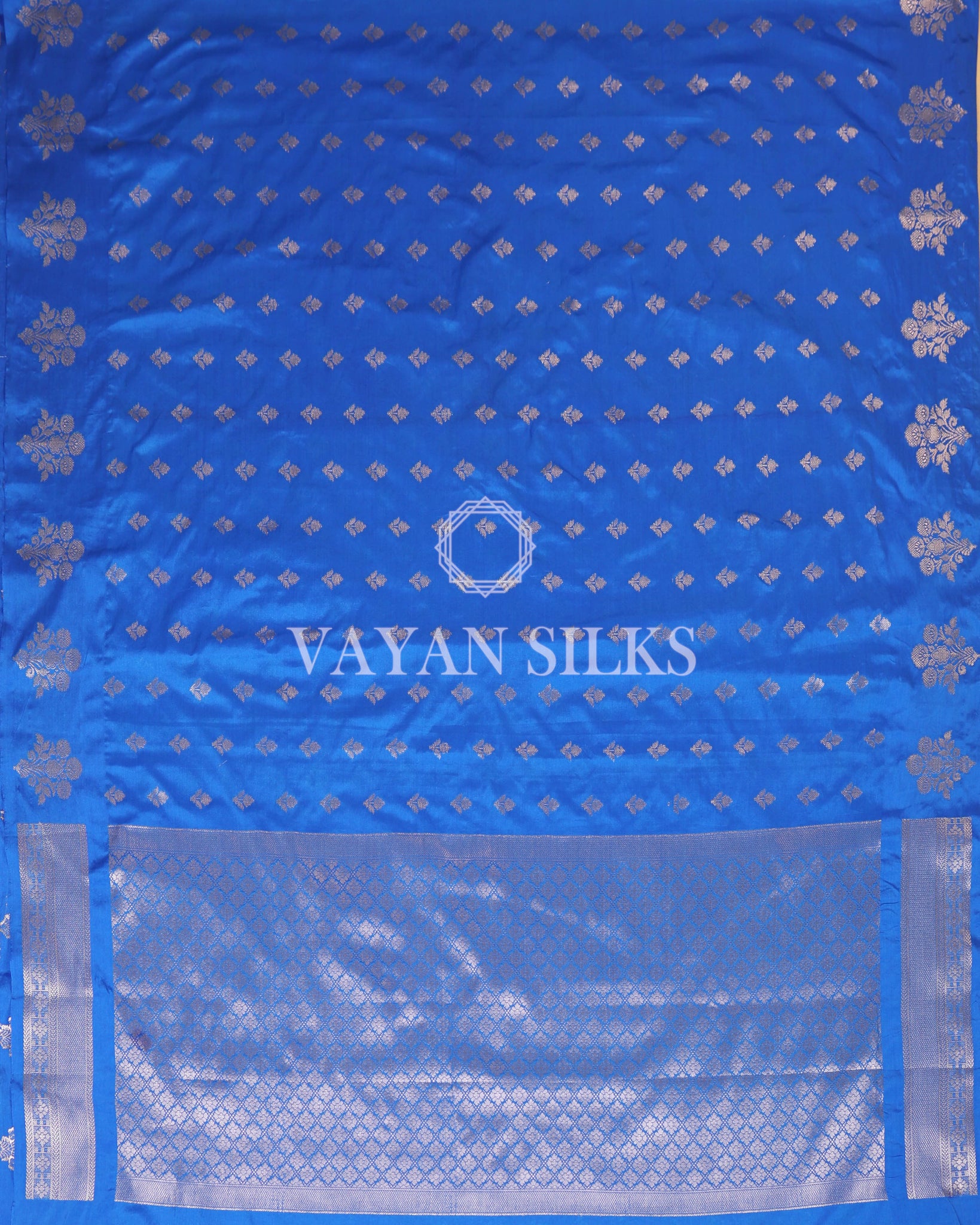 Pure Handloom Banarasi Saree in stunning Royal Blue with intricate zari floral motifs and elegant border. A perfect choice for weddings, festive occasions and celebrations.
