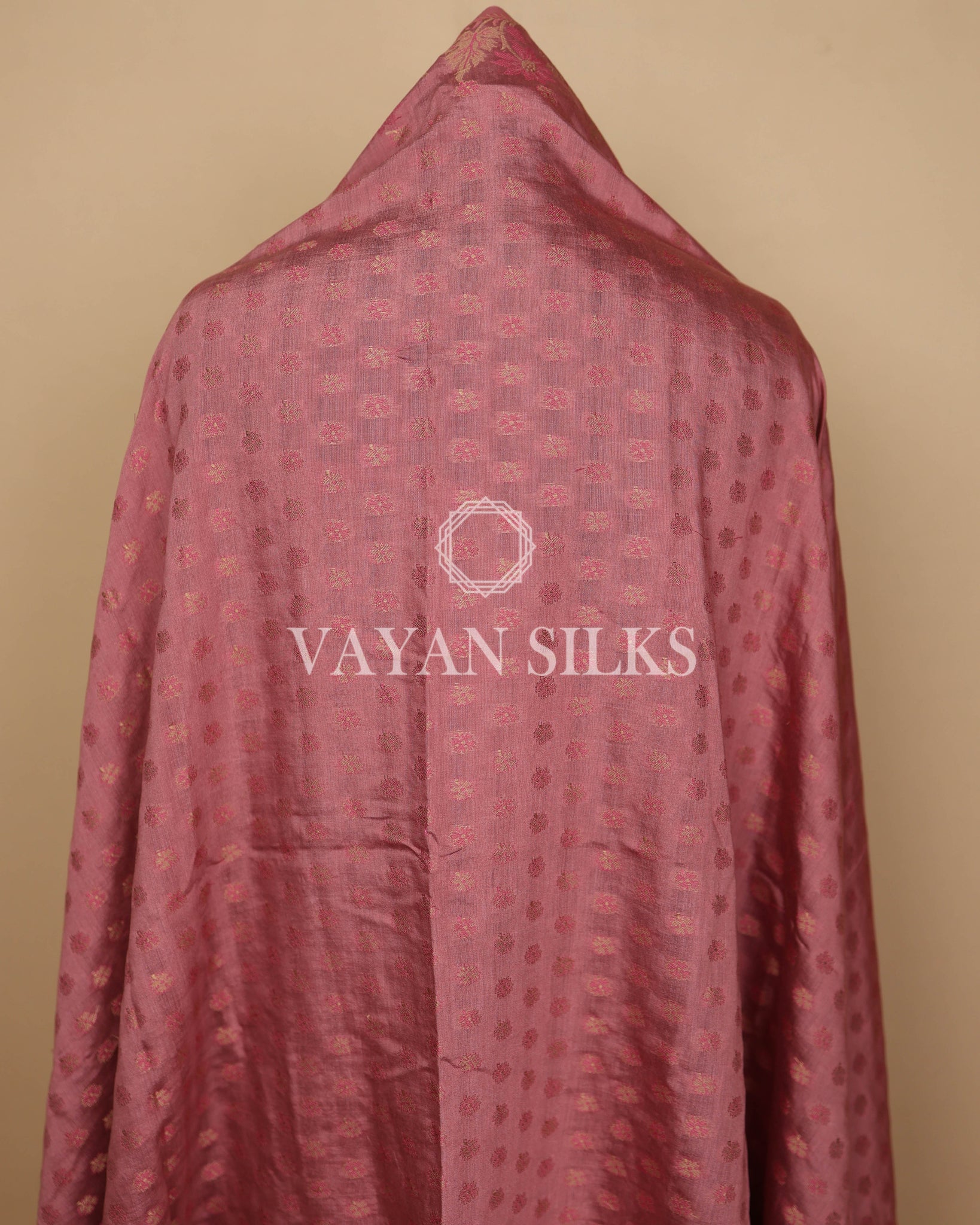 Dusky Rose Pink Banarasi Silk Unstitched Suit Set