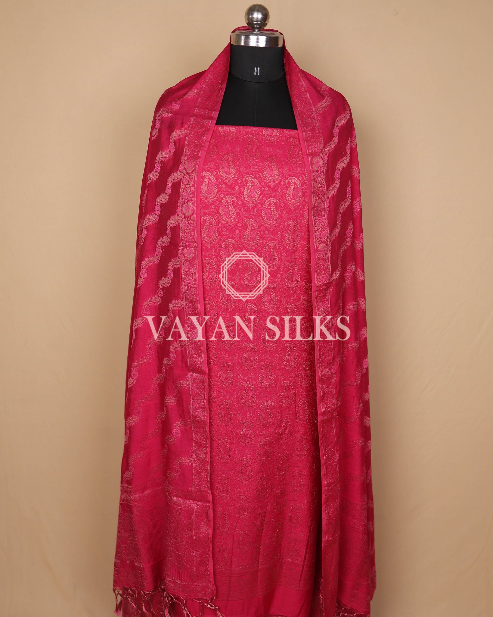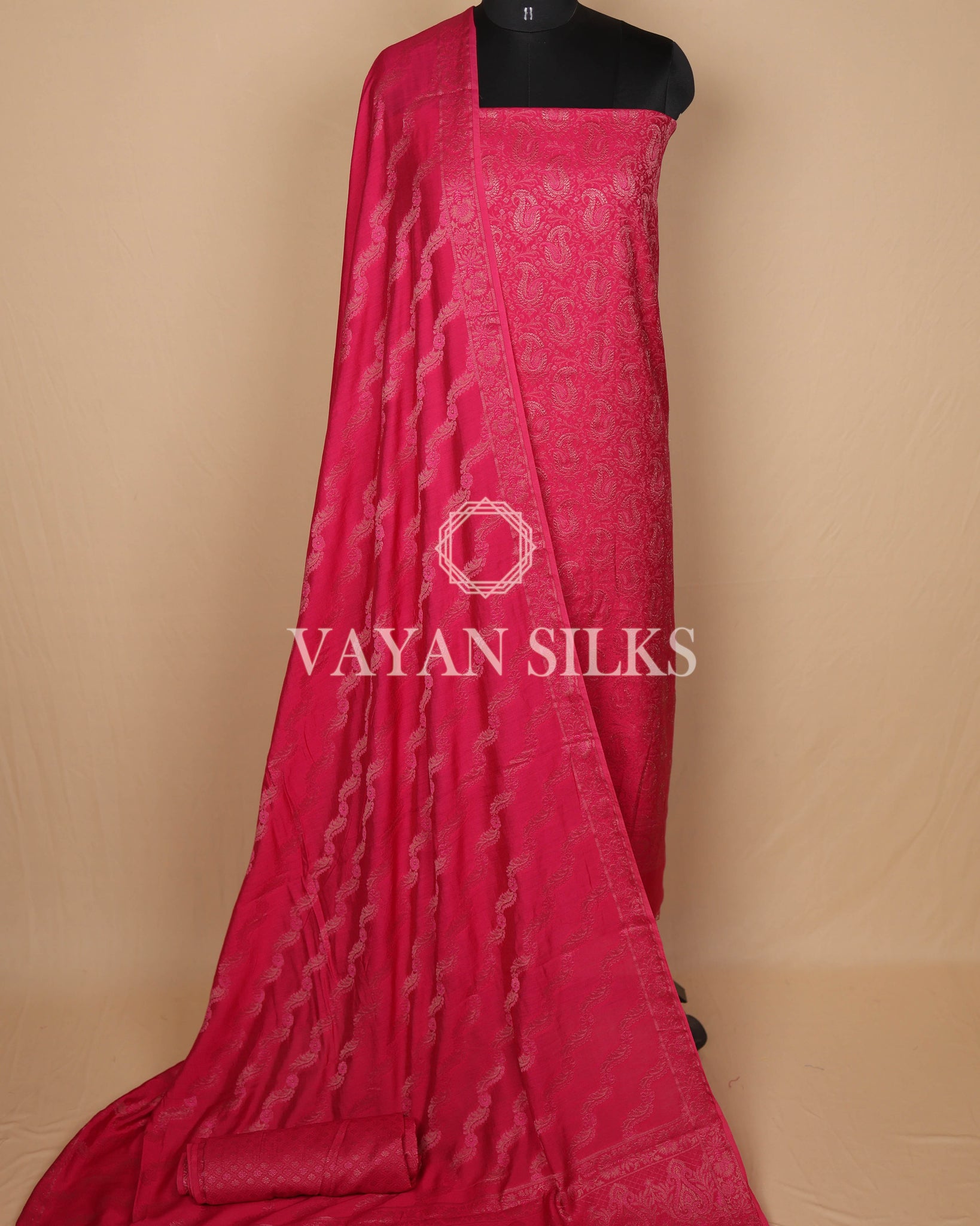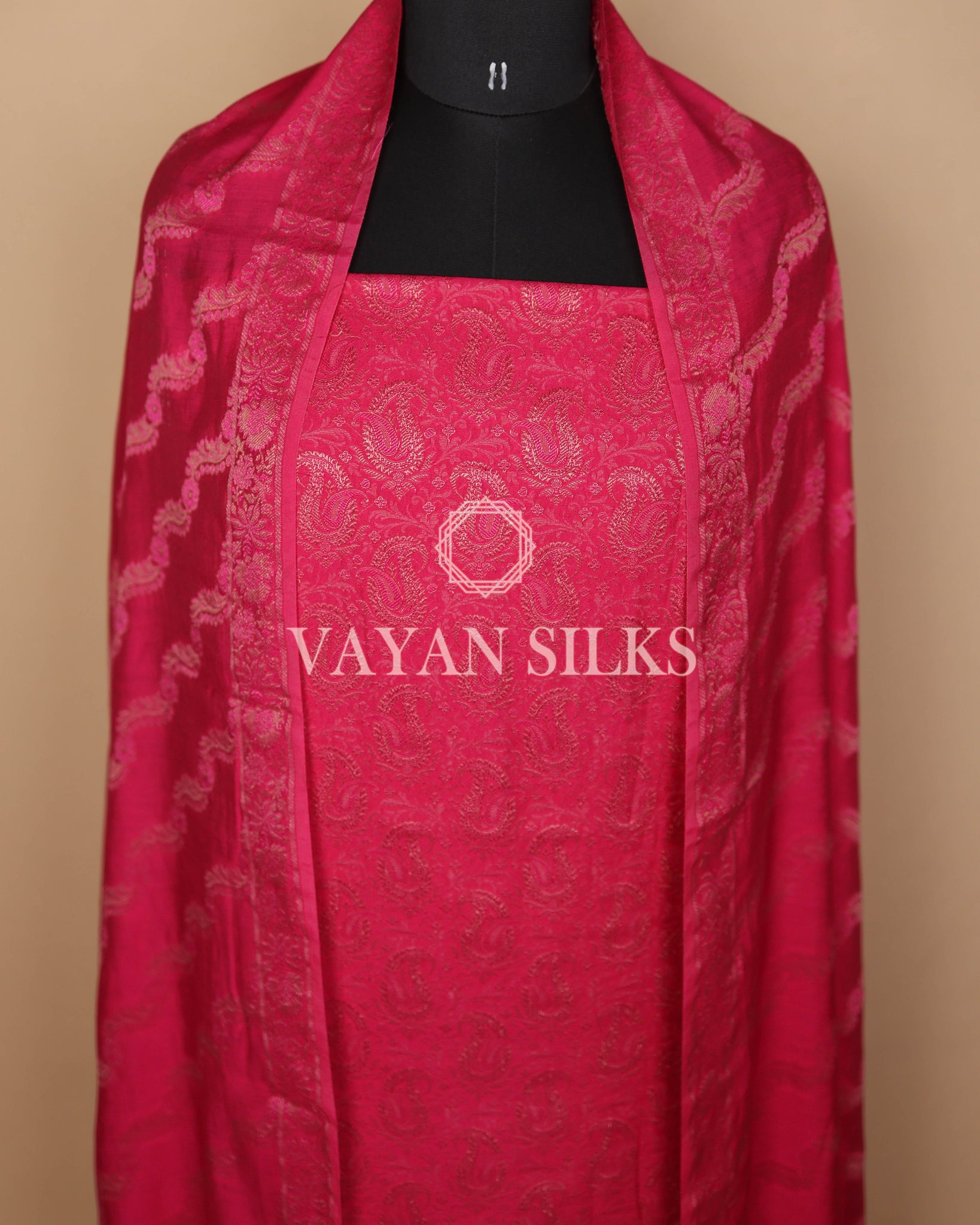 Queen Pink Banarasi Silk Unstitched Suit Set