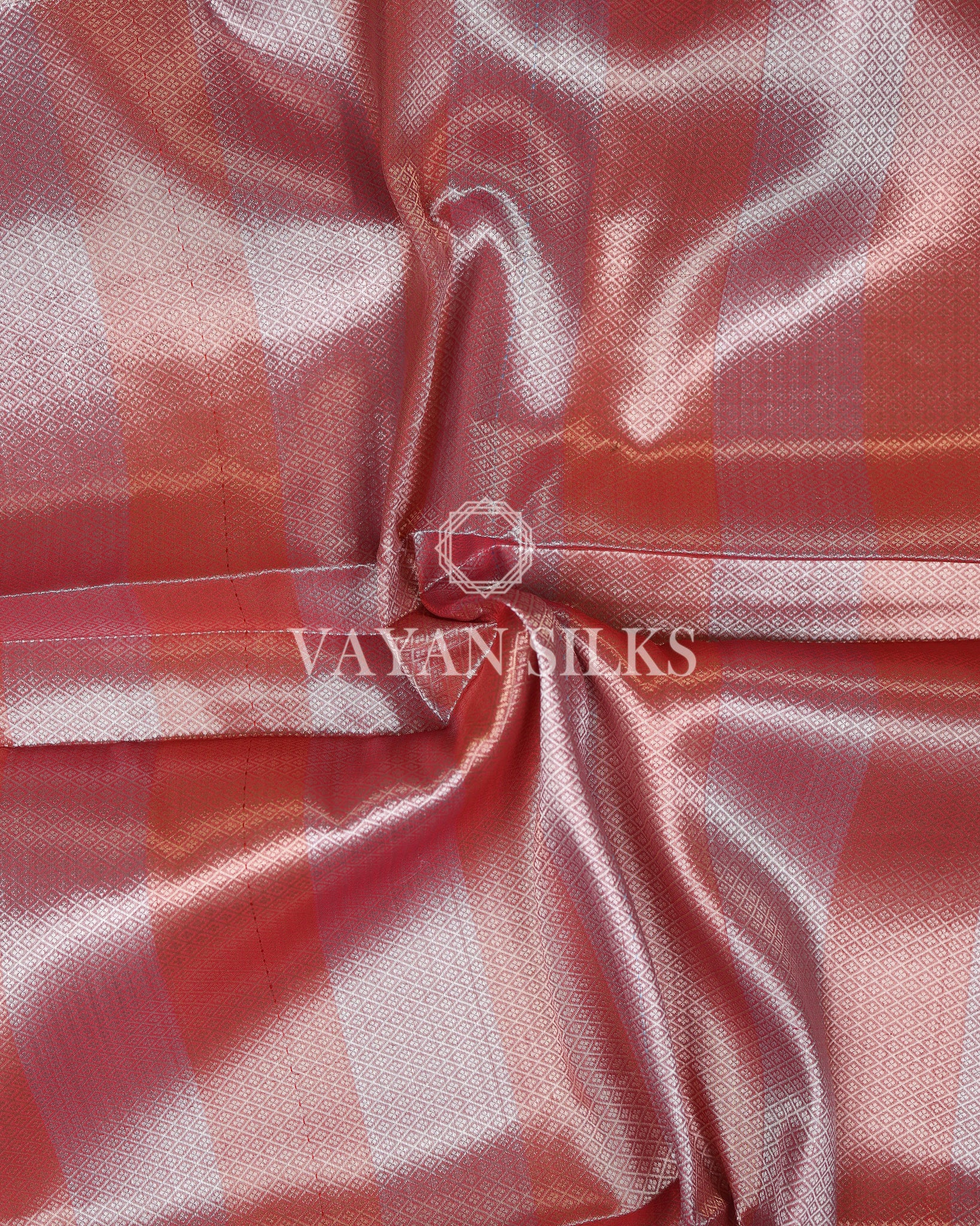 Elegant Banarasi Tissue Saree with delicate red and blue woven motifs, silver-red border and a rich sheen – perfect for weddings and festive occasions.