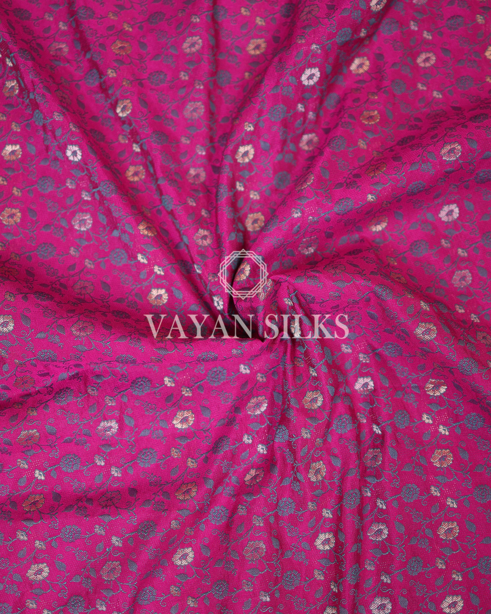 Vibrant pink Banarasi silk saree with rich woven pallu and traditional paisley border. A perfect pick for weddings, festive occasions and cultural celebrations.