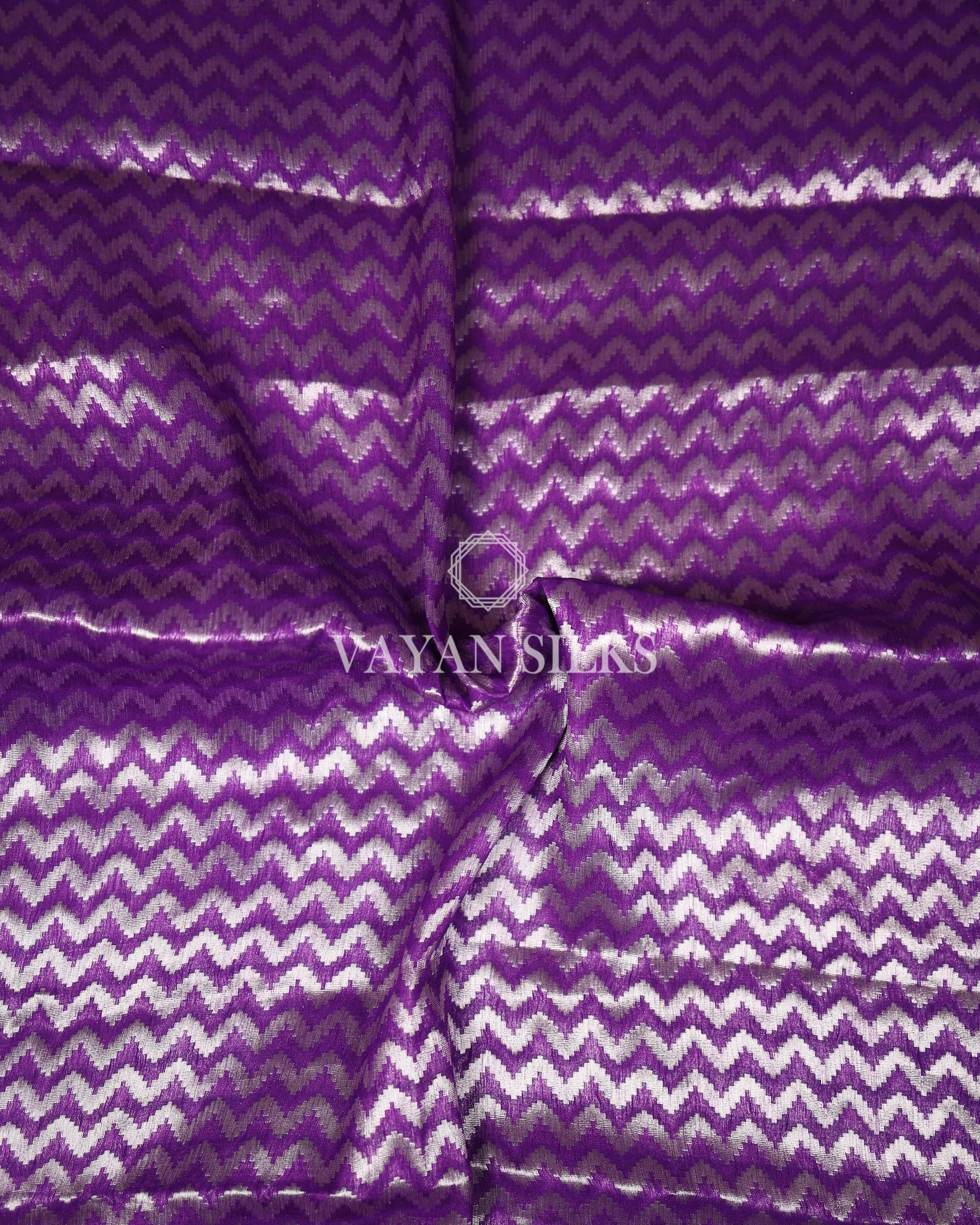 Vibrant purple Banarasi pure khaddi silk saree with detailed floral patterns and a luxurious traditional finish.