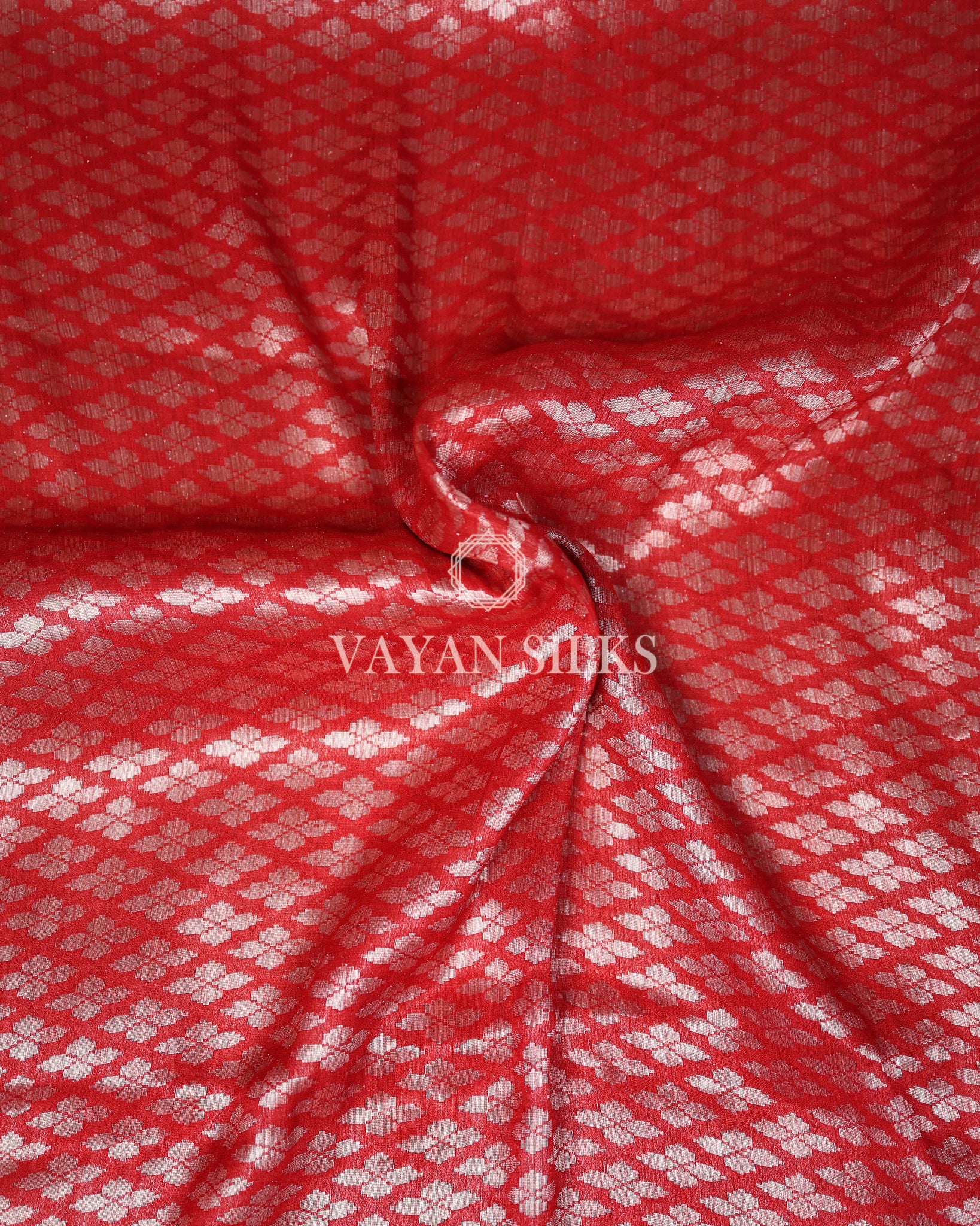 Vibrant red Banarasi pure khaddi silk saree with detailed floral patterns and a luxurious traditional finish.