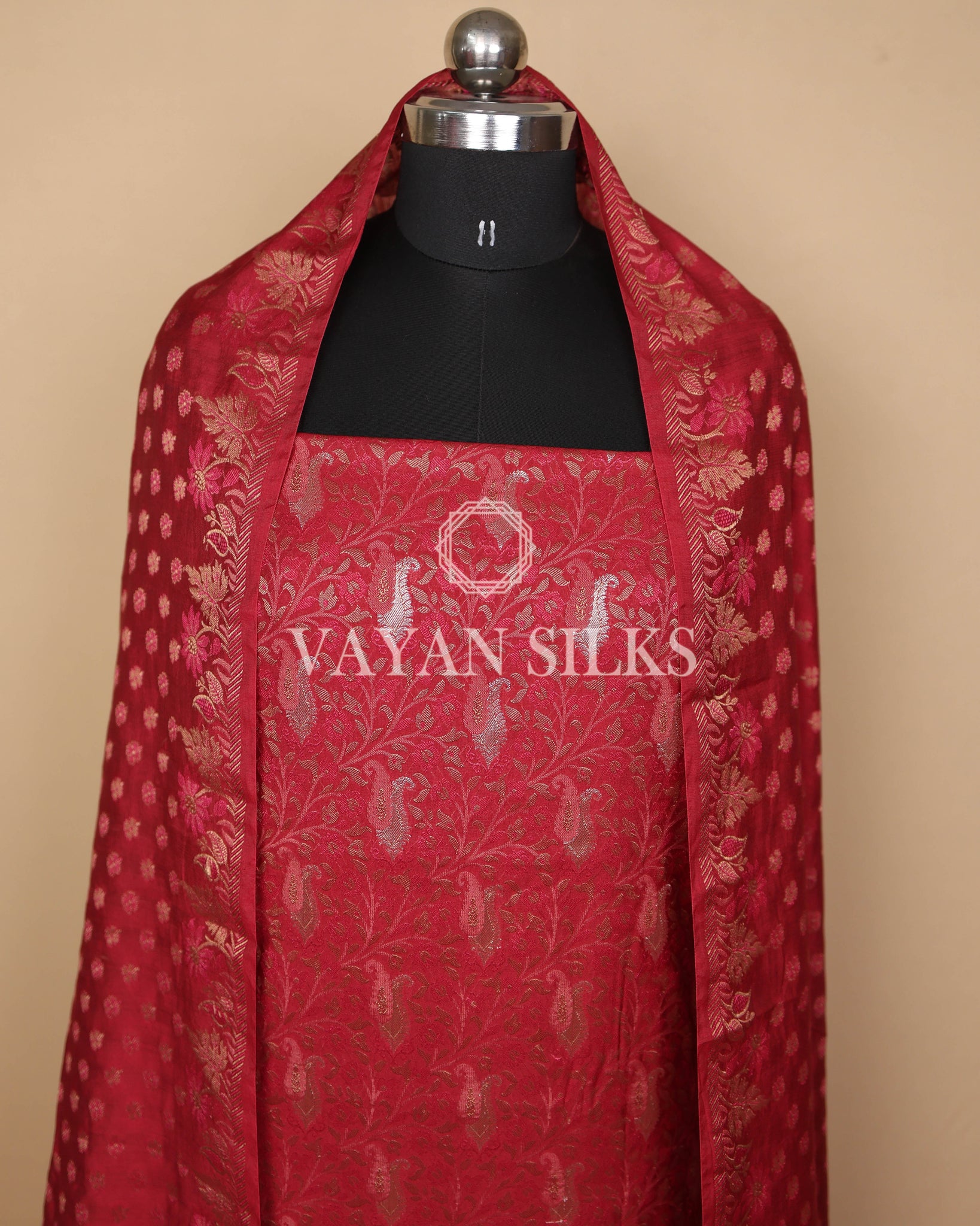 Elevate your style with our luxurious Jamawar Jamdani Banarasi Suit crafted in rich silk with intricate handwoven designs for timeless elegance.